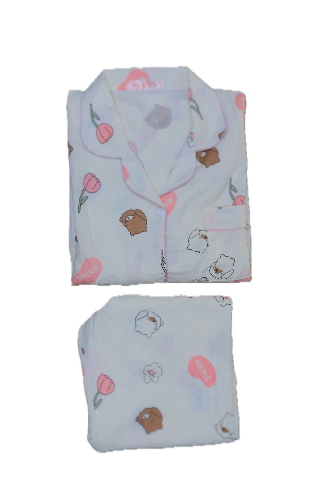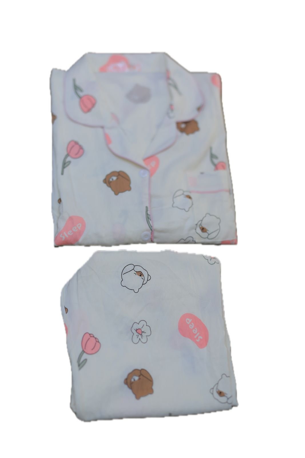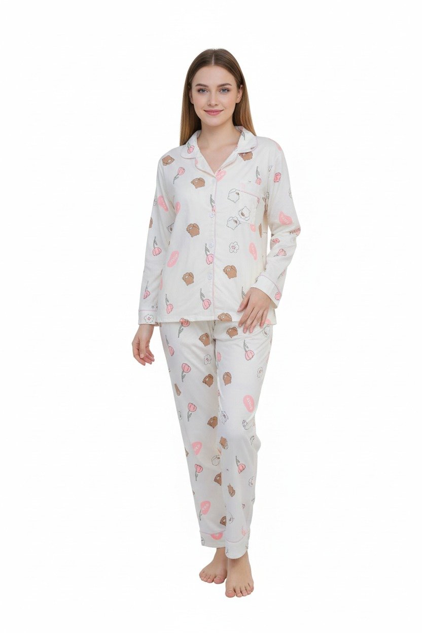 استمتعي بالراحة والأناقة مع هذه البجامة الحريمي الأنيقة المزودة بأزرار عملية. مصنوعة من خامات ناعمة ومرنة لتمنحك شعورًا بالراحة طوال اليوم، مع تصميم أنيق يضفي لمسة كلاسيكية على إطلالتك المنزلية. مثالية للنوم أو للراحة في البيت، تجمع بين العملية والجمال في كل تفصيلة.