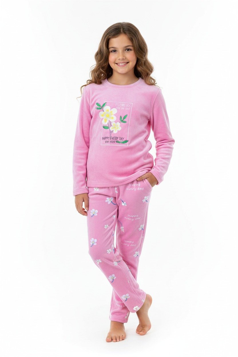 استمتعي بالراحة والأناقة مع هذه البجامة البناتي المصنوعة من القُطيفة الناعمة والفاخرة. تصميمها المريح يجعلها مثالية للنوم أو للراحة في المنزل، مع لمسة أنثوية جذابة تناسب جميع الأوقات. خامتها الدافئة تجعلها مثالية لفصول الشتاء، كما أن خامة القُطيفة تمنح إحساسًا ناعمًا ولطيفًا على البشرة.