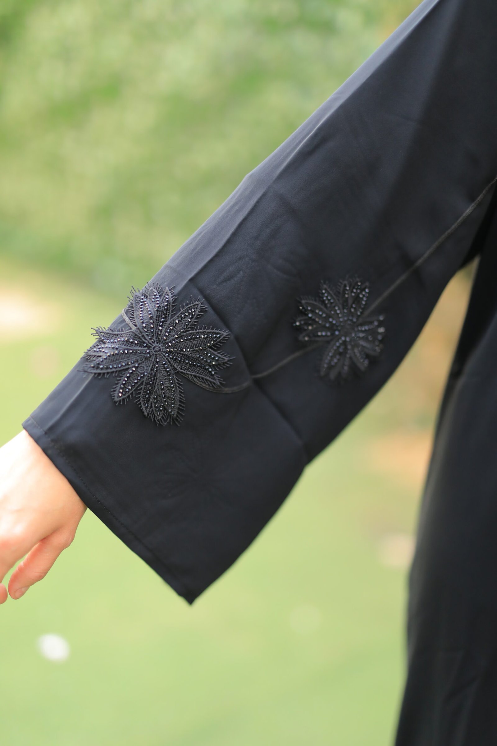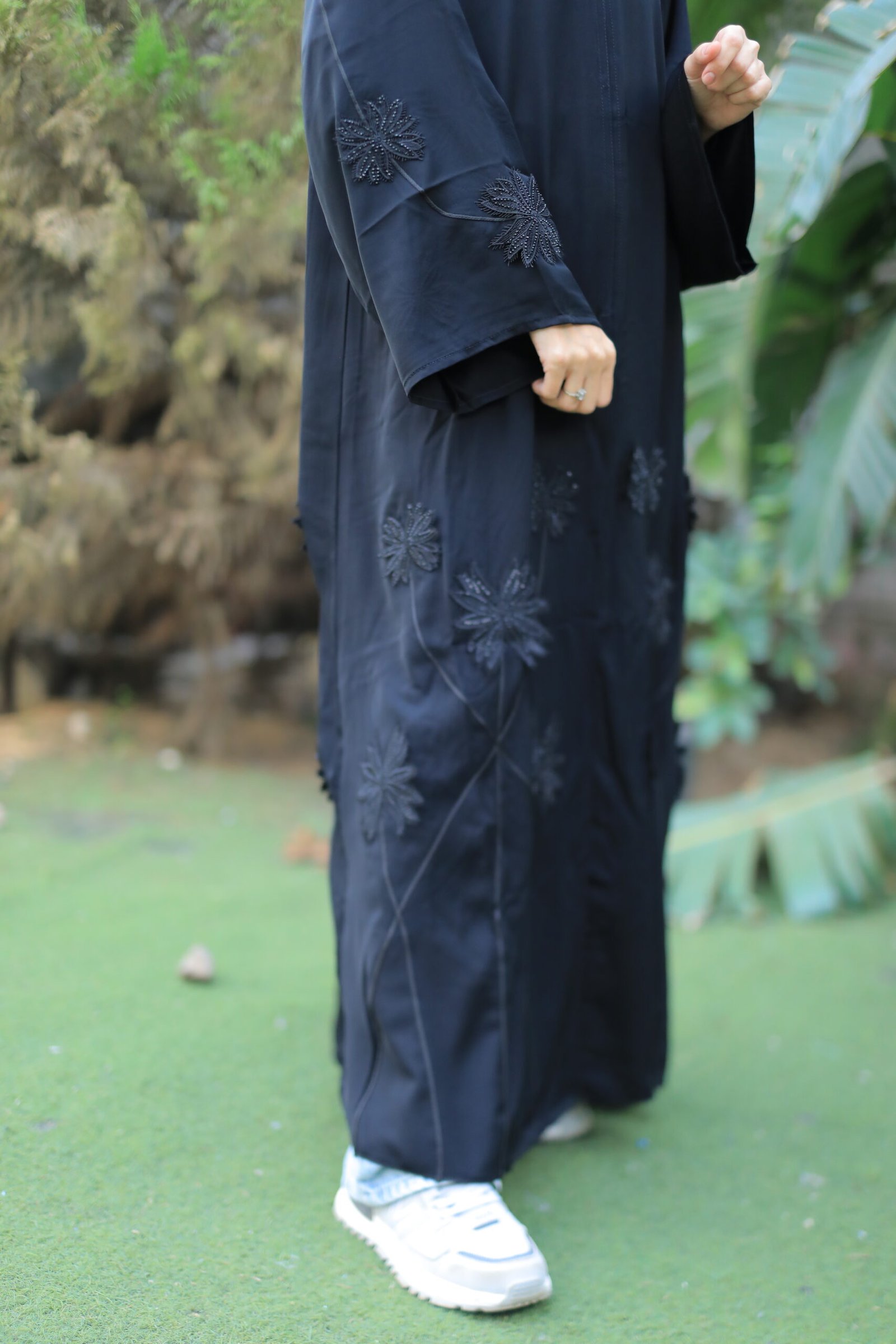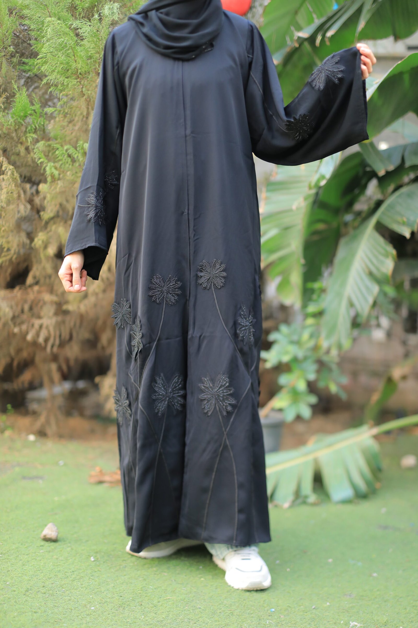 عباية سوداء بتطريز ورد