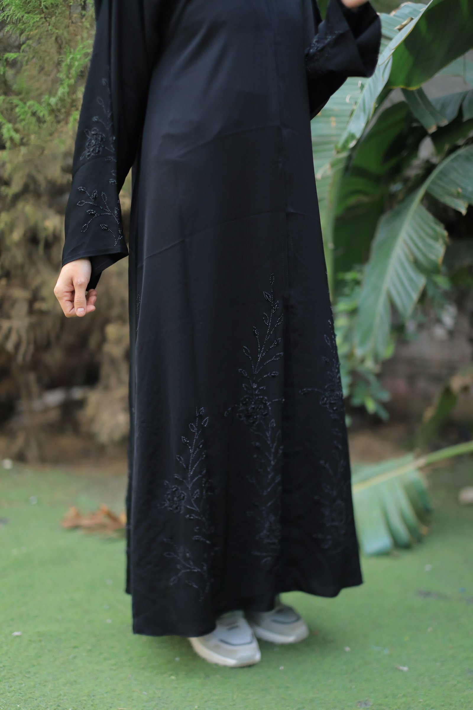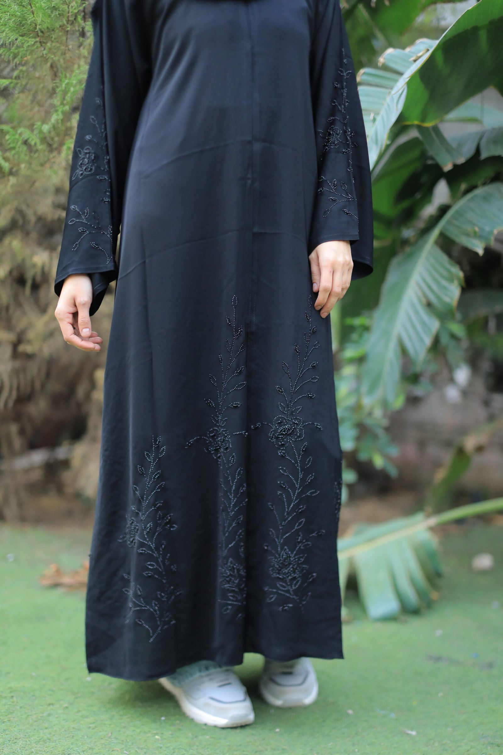تميزي بإطلالة فريدة مع هذه العباية السوداء الرائعة، التي تجمع بين البساطة والفخامة في تصميم مميز. خامتها الناعمة والخفيفة تمنحك راحة وأناقة في كل حركة، بينما التفاصيل الرائعة تضيف لمسة خاصة تجعلها الخيار الأمثل لكل المناسبات والسهرات.